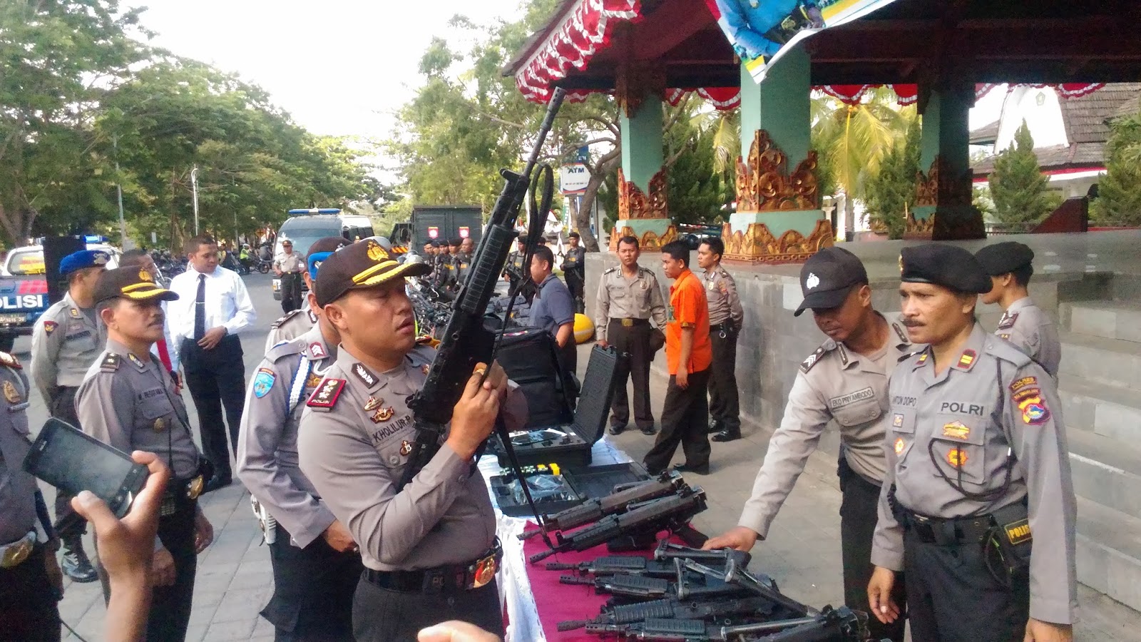 Pada apel gelar pasukan tersebut dilakukan pengecekan terhadap kondisi fisik seluruh peratalan keamanan yang dimiliki Polres mulai dari kondisi senjata, armada hingga peralatan penggembosan ban sepeda motor maupun mobil.